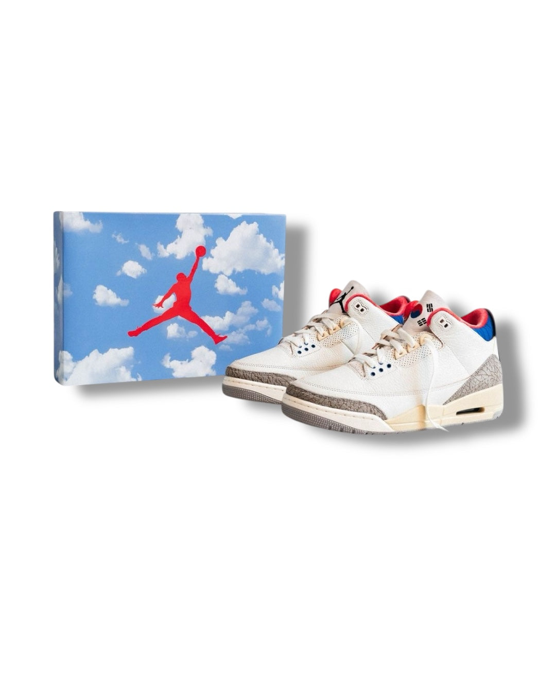 Jordan 3 calidad PK, este par esta inspirado en las olimpiadas en Corea de 1988 y fue hecho para Michael Jordan, el par esta hecho de cuero blanco y el ya clásico estampado piel de elefante en gamuza lo que mas resalta en este par es que vemos en la lengüeta la bandera de Corea del Sur.