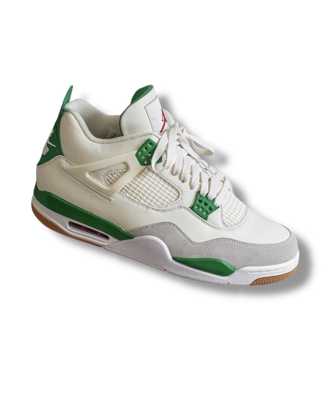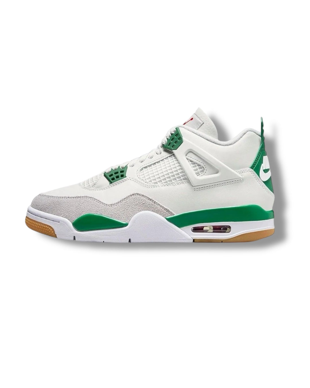 Jordan 4 calidad PK, en este par tenemos la union de dos disciplinas y sub marcas Nike SB y AJ4, tenemos este par en piel color blanca y detalles en color verde.